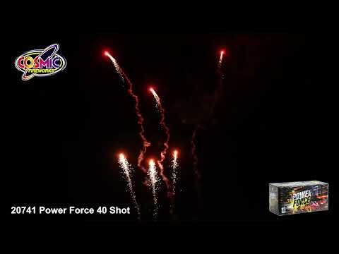 A 40 shot 1.3G cake ejecting either whistling comets, green or silver tails that burst with either red stars & silver strobe effects, blue stars & crackling effects, red or green palm effects, or purple stars with chrysanthemum effects.